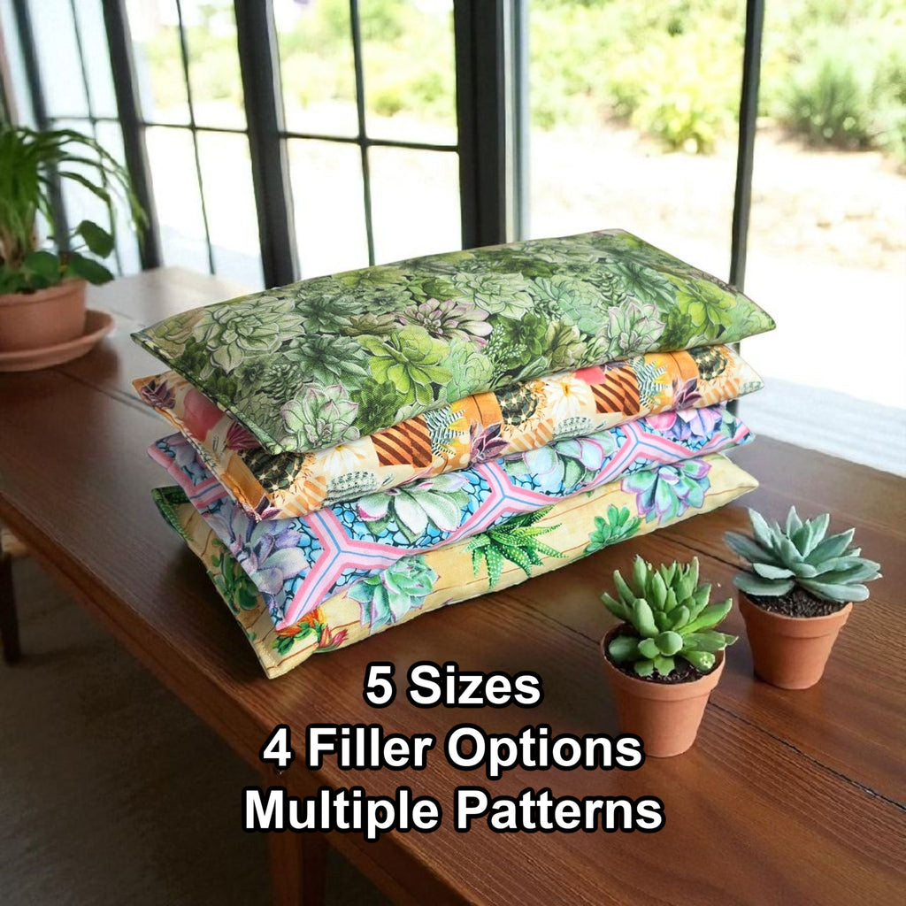 Heating Pad, Cherry Pits, Rice, Walnut or Flax Seed, 5 sizes, Succulent Patterns - Microwaveable